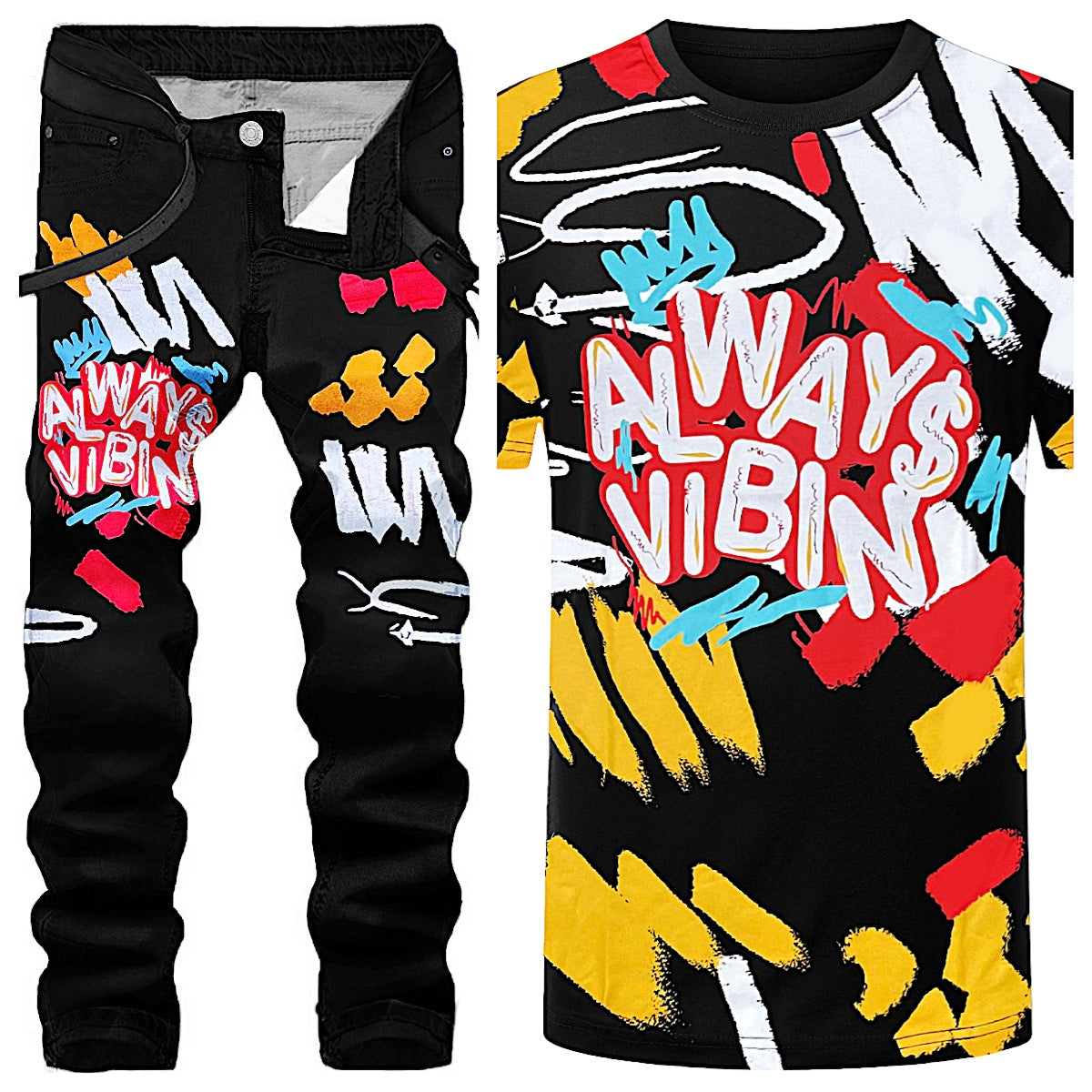 Bundle - 1116515 -Vibini T-shirt+Vibin Graffiti Jeans-BLACK-M2545 + M5464D - GOTit/Waimea+waimea/RAMS