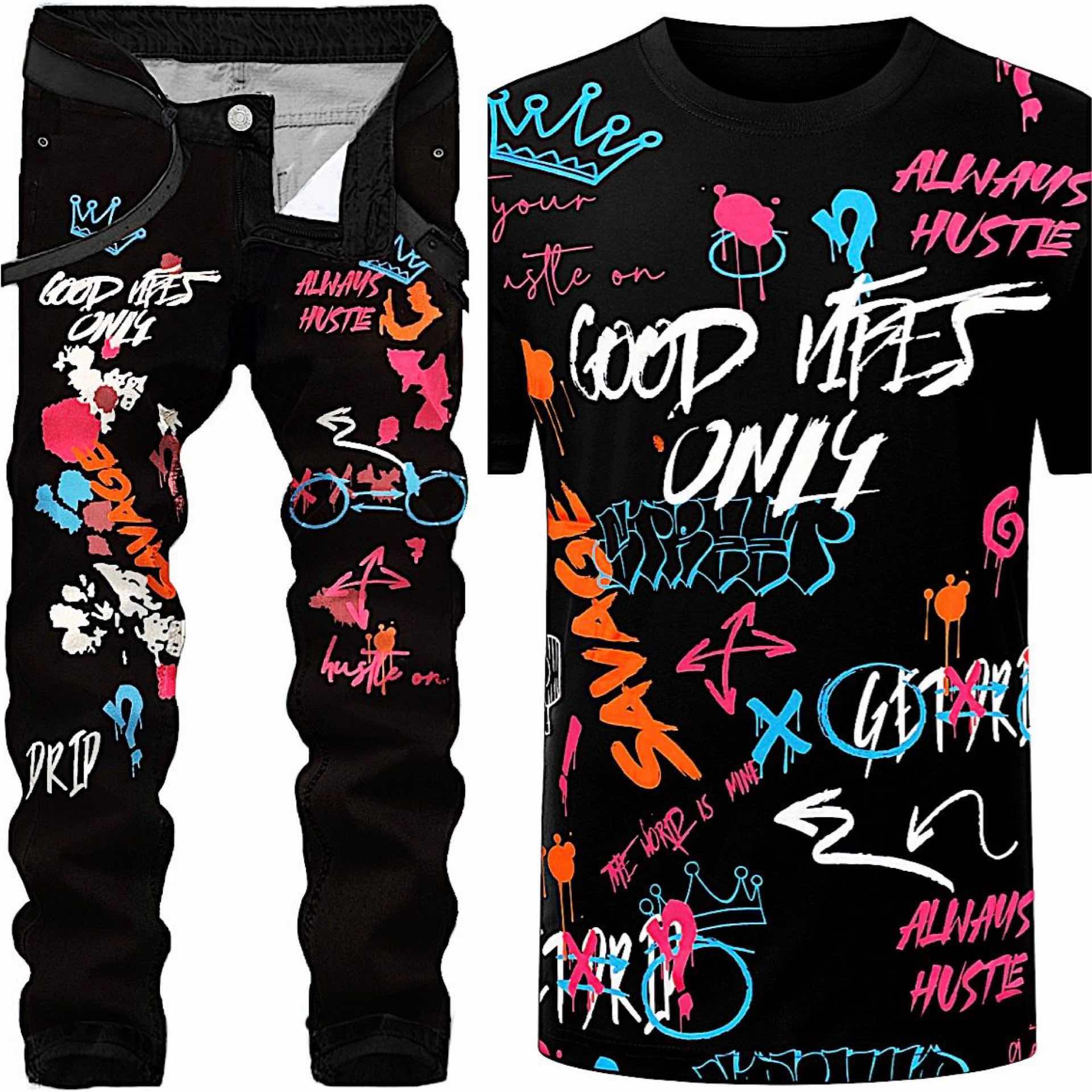 Bundle - 1094854 -Good vibes T-shirt +Good Vibes Graffiti Jeans-BLACK -M5468D + M2543 - GOTit/Waimea+waimea/RAMS