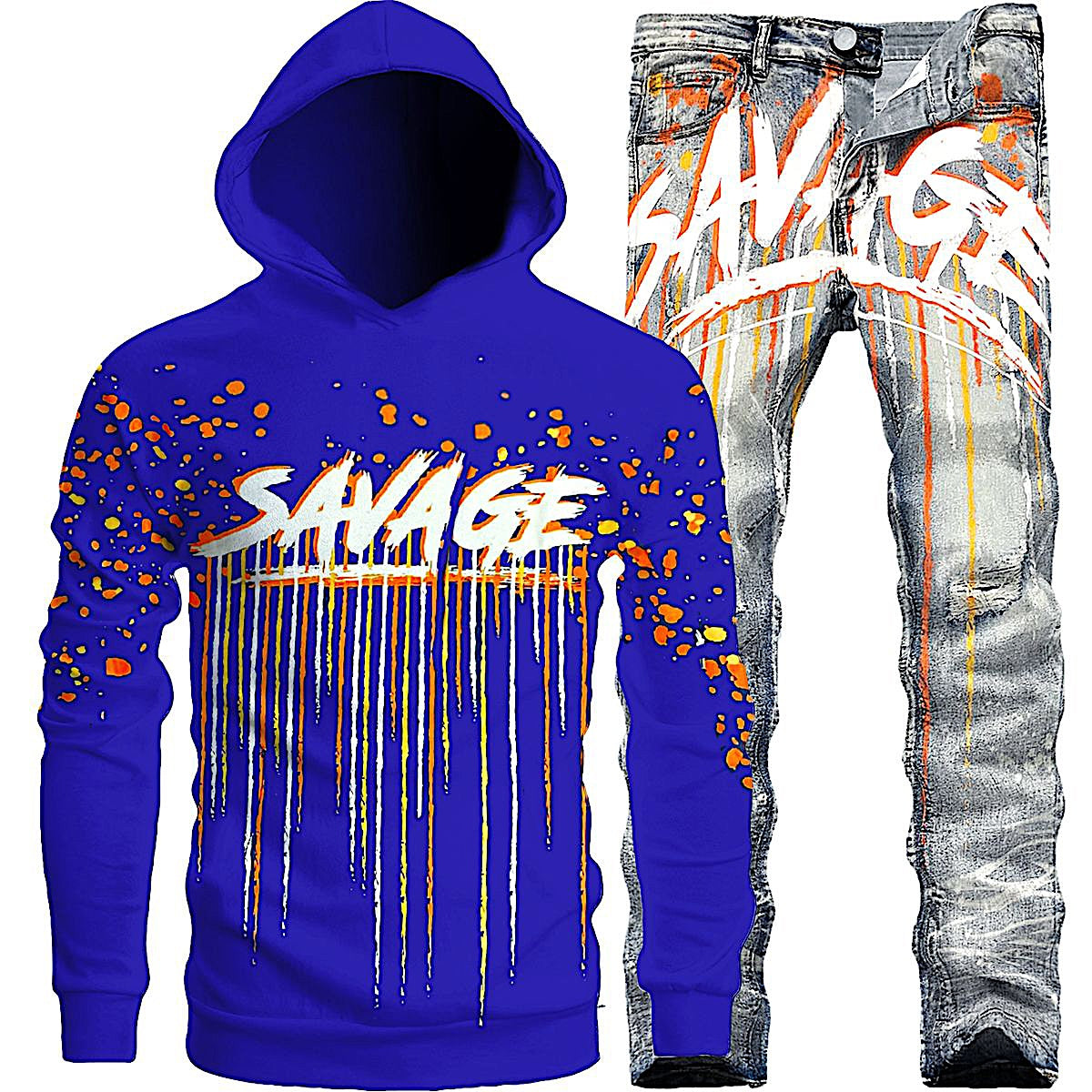 Bundle - 1099601 -Savage Drip Hoodie+Savage dripping Jeans- ROYAL+black/LT BLUE- M1022H/M2535+ M5455D- GOTit/Waimea+RAMS/waimea