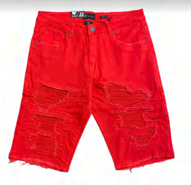 Copy of Man - Skinny Ripped Denim Shorts - RED- M7346T - (rams) mystery