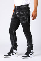 World Tour Black Grenada Denim Pant With Paint Detail.
