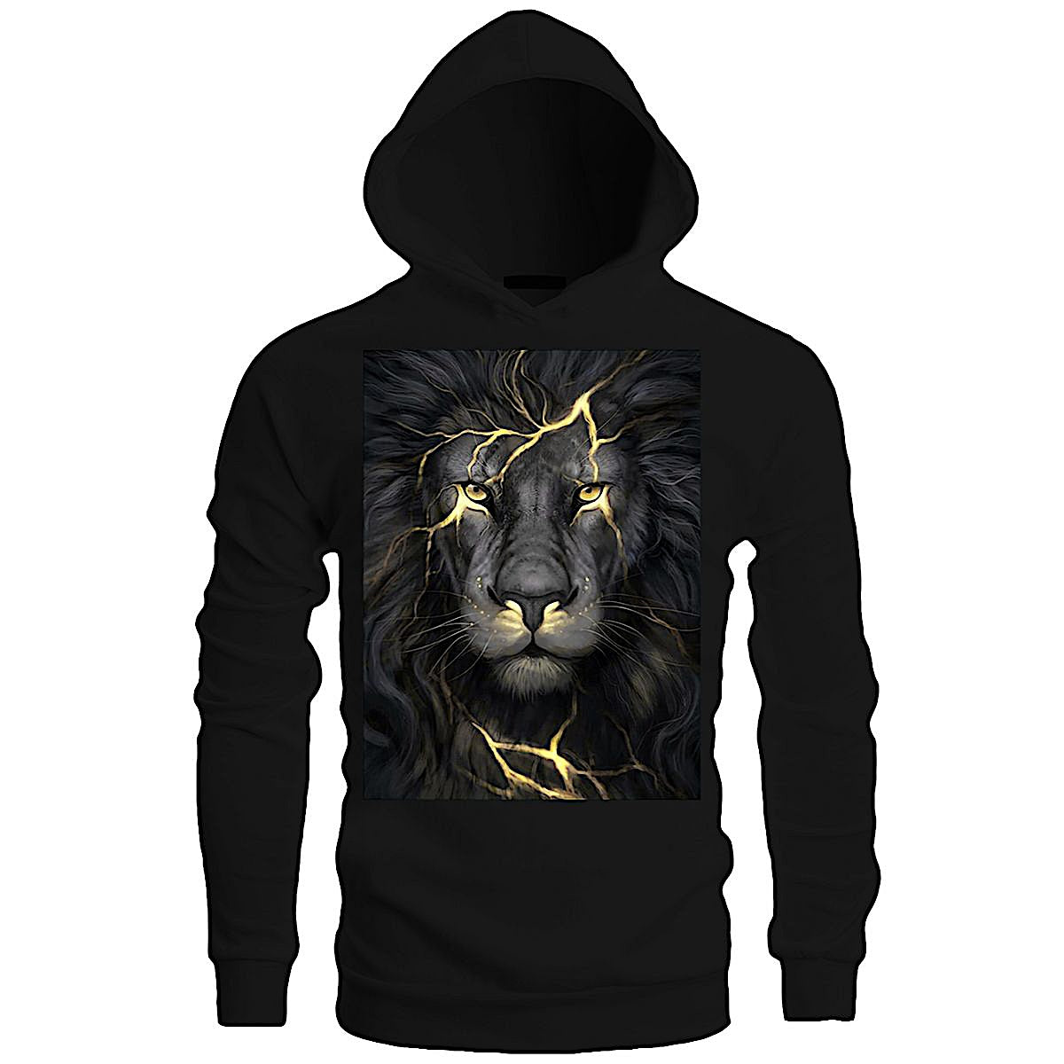 HOODIE - lion lightning - black