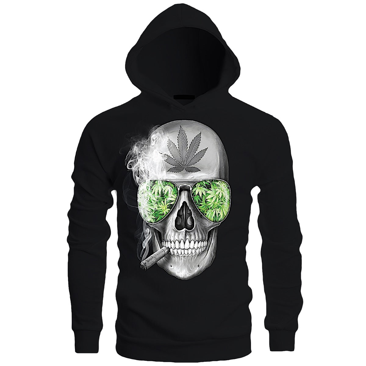 Hoodie - skull smoking print - Black