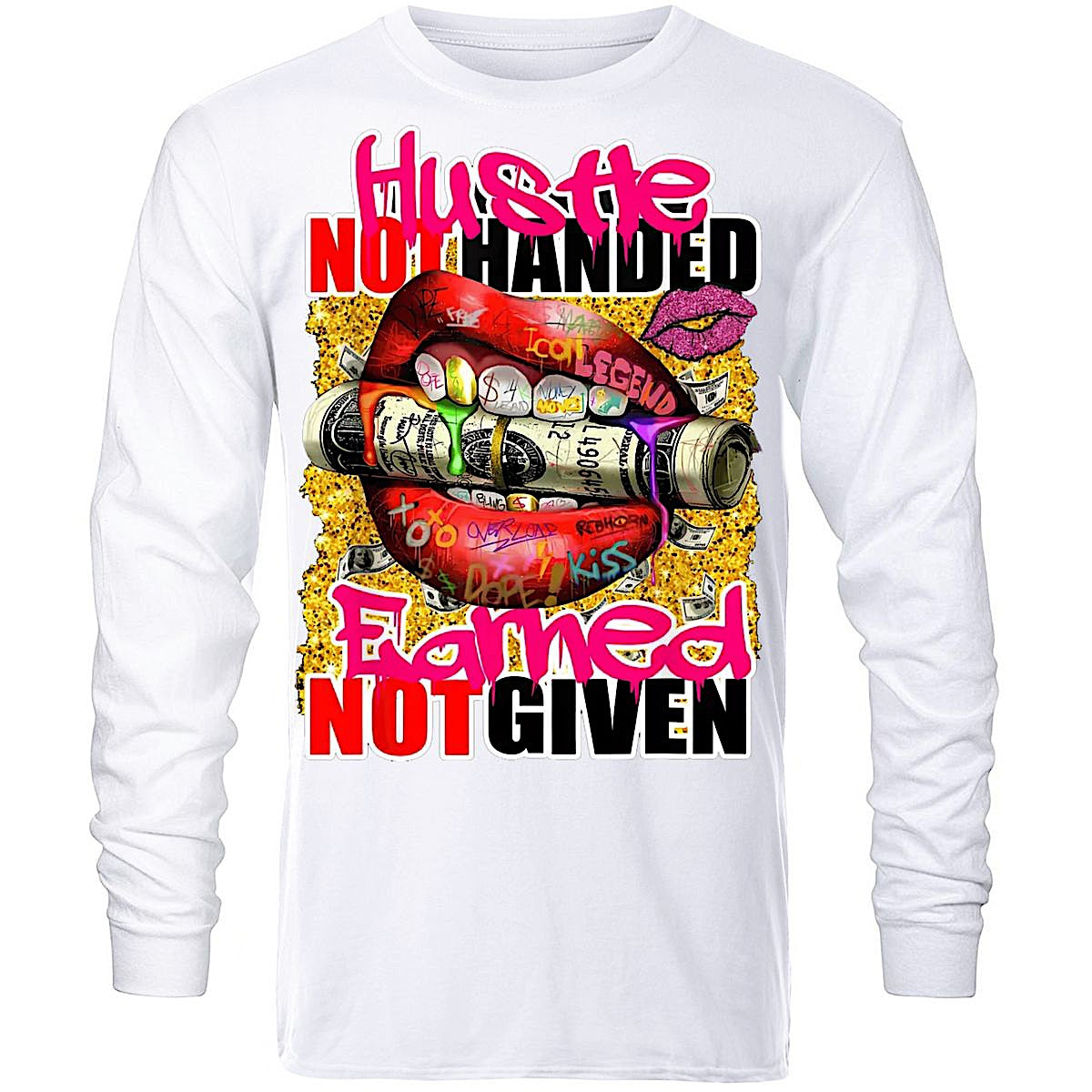 L/S T-shirt - hustle not handed #4311 print - White (Copy)