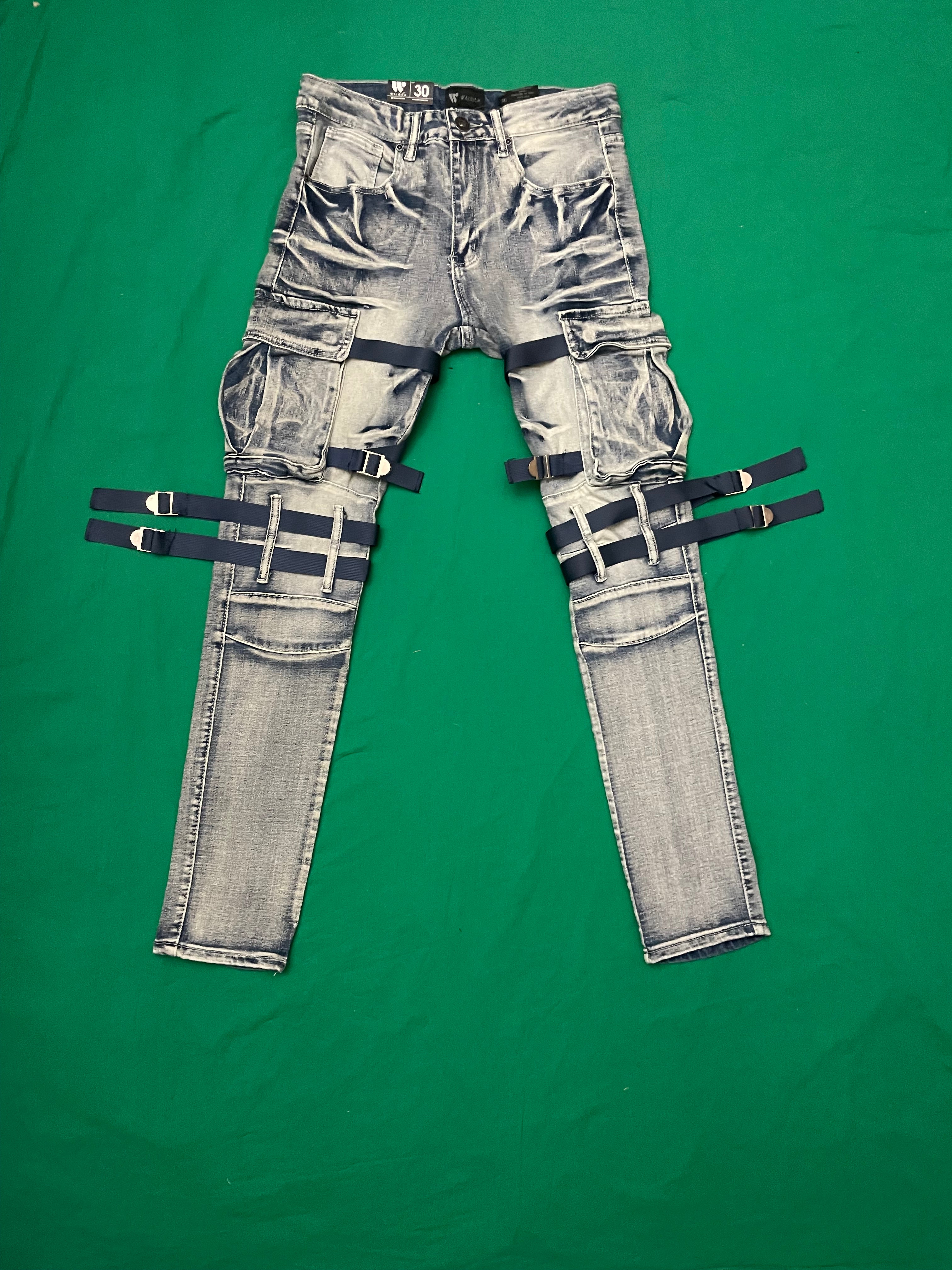 MIAMI - Skinny Cargo Straps Jeans - ANTIQUE BLEACH - M5348D - Rams mystery
