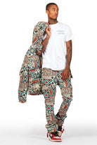 Nard Beige Multi Tapestry Puffer Jacket