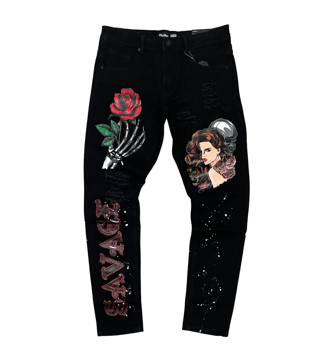 SAVAGE RHIMESTONE STUD DENIM Jeans - Black - M12S - MOTIVE