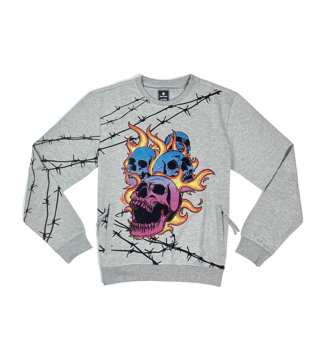 Skull on fire Sweatshirt - MT15S H.GREY - MOTIVE