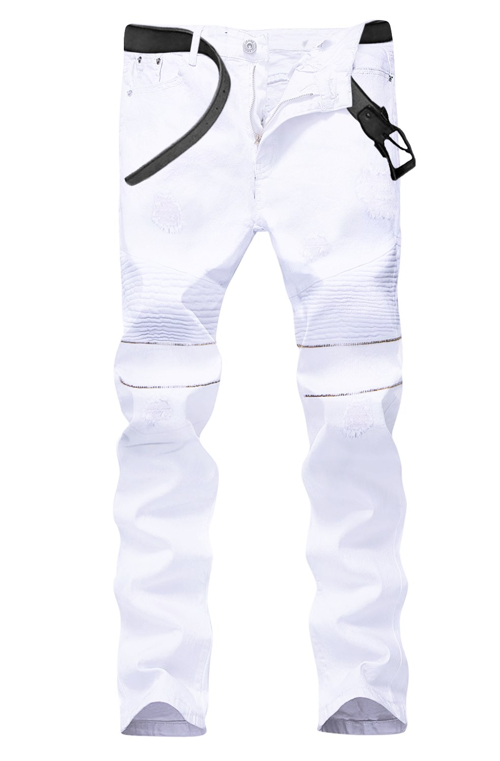 Slim Biker Zippers Jeans - White - BRANDON (dealswhoesle)