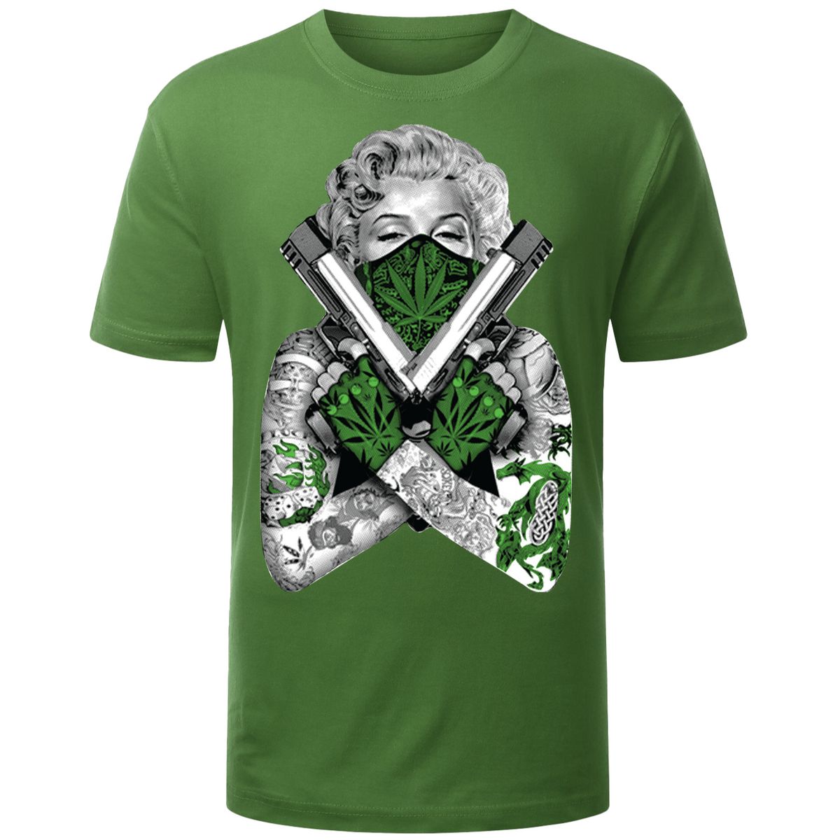 T-shirt -monroe weed guns print - green (Copy) (Copy)