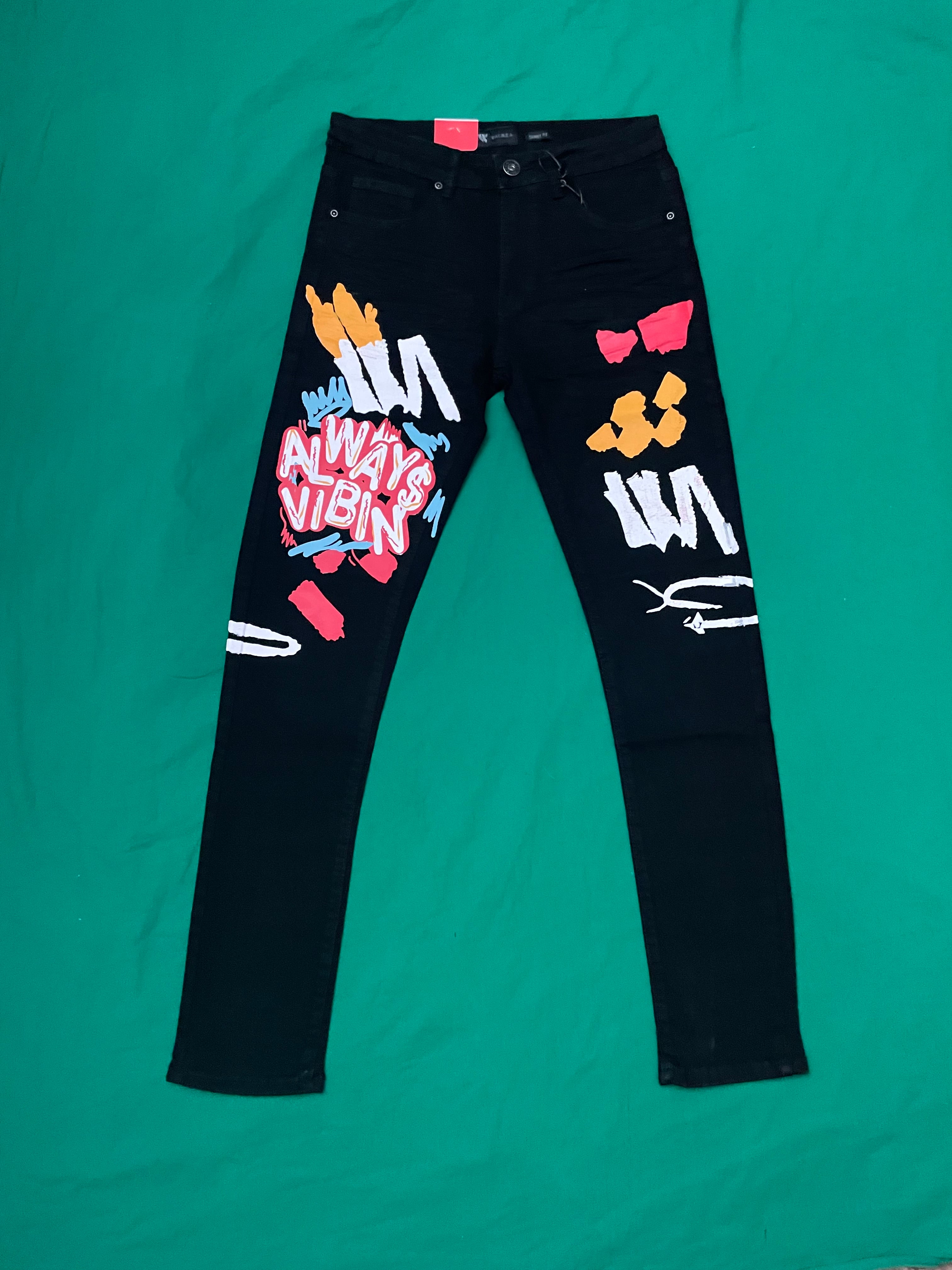 Vibin Graffiti Jeans - Black - M5464D - RAMS/waimea