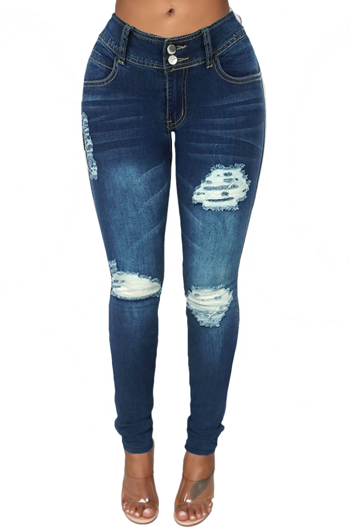 Women Distressed Skinny Jeans - DARK BLUE - 8102- D Rock