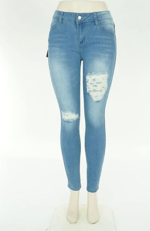 Women Distressed Skinny Jeans - LIGHT BLUE - 8101- D Rock