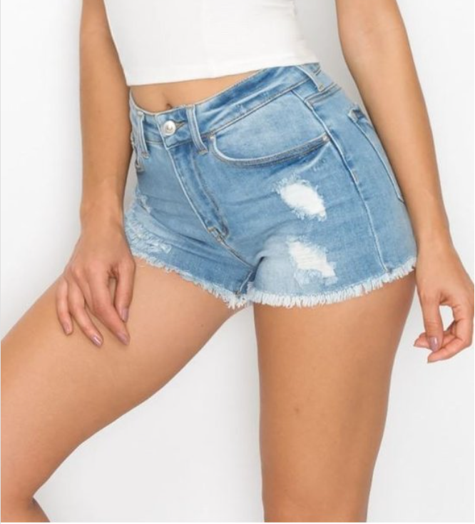 Women gang Distressed Short Jeans - CH43209-3 or 90234- Light -Blue Age