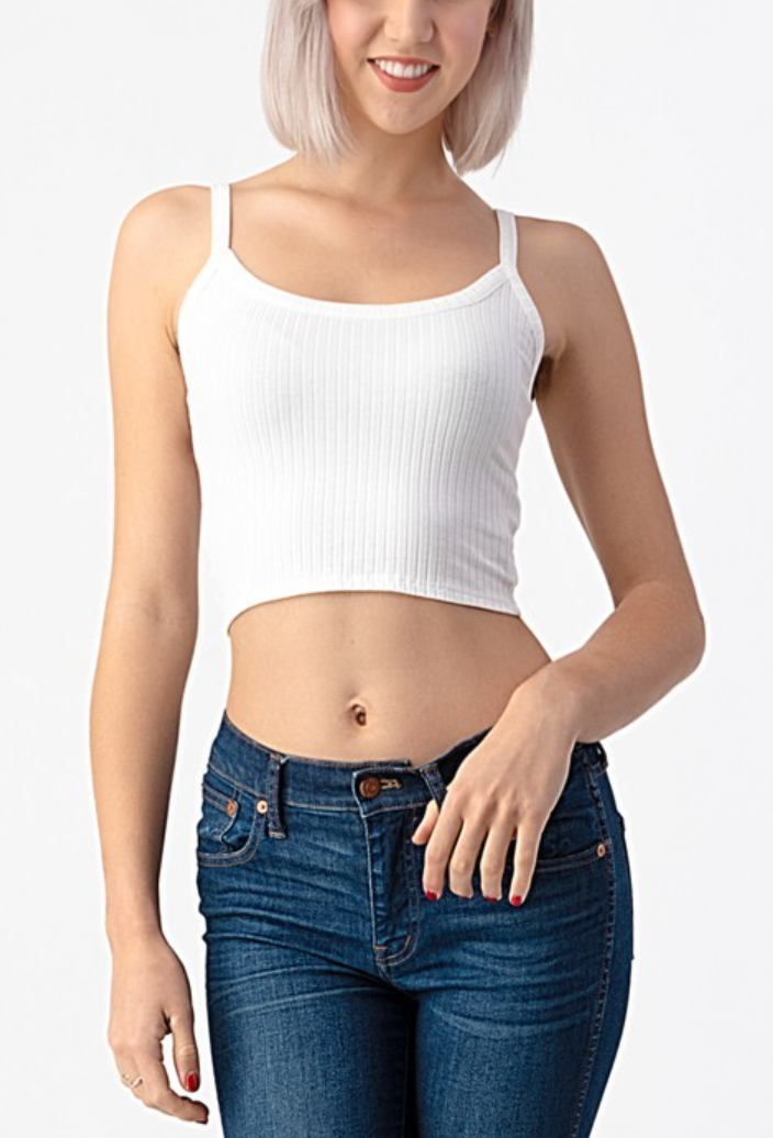 Women Knit Crop Tank Top- Soft White-RC38093A -HEART AND HIPS mystery