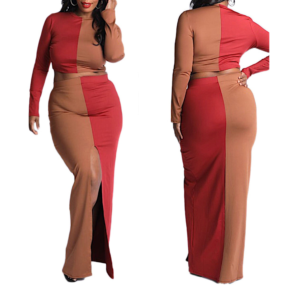 2pc Color Block Crop Top+Maxi Skirt ππ½