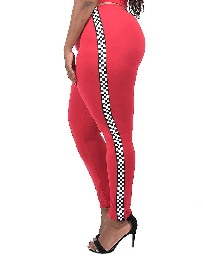 Women Plus 2PC Side Stripe Pants - ONLY PANTS- Red - GST3902 -Gibiu