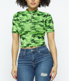 Women Turtle Neck Camo Top -NEON Lime -TB6558-Julia mystery