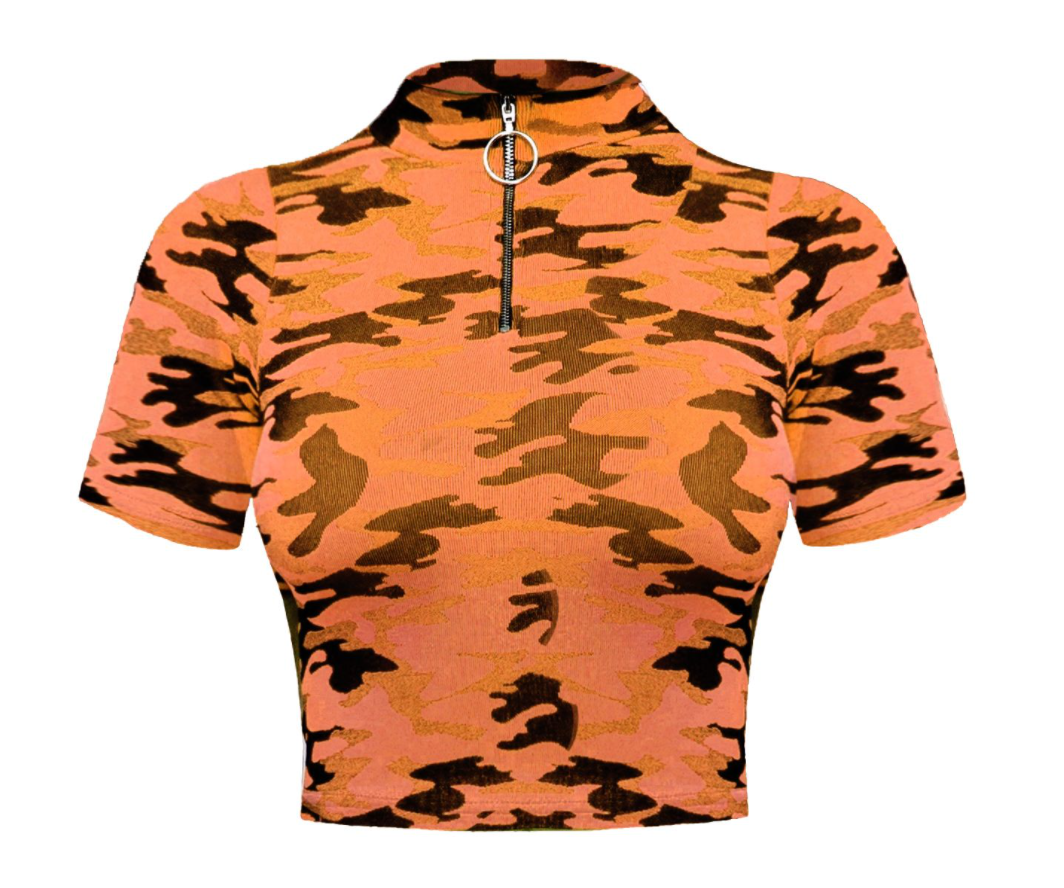 Women Turtle Neck Camo Top -NEON ORANGE -TB6558-Julia mystery